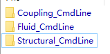在用命令行运行SystemCoupling之前,需要先在Workbench平台上设置好Transient Structural、Fluid(Fluent)和Systemcoupling三个模块,并分别导出文件structural.dat、fluidFlow.cas、coupling.sci(名字可以不用按照这个取,关键是有这三个类型的文件)。之后需要新建三个文件夹Structural_CmdLine,Fluid_CmdLine,Coupling_CmdLine,并把上述的三个文件分别放入。